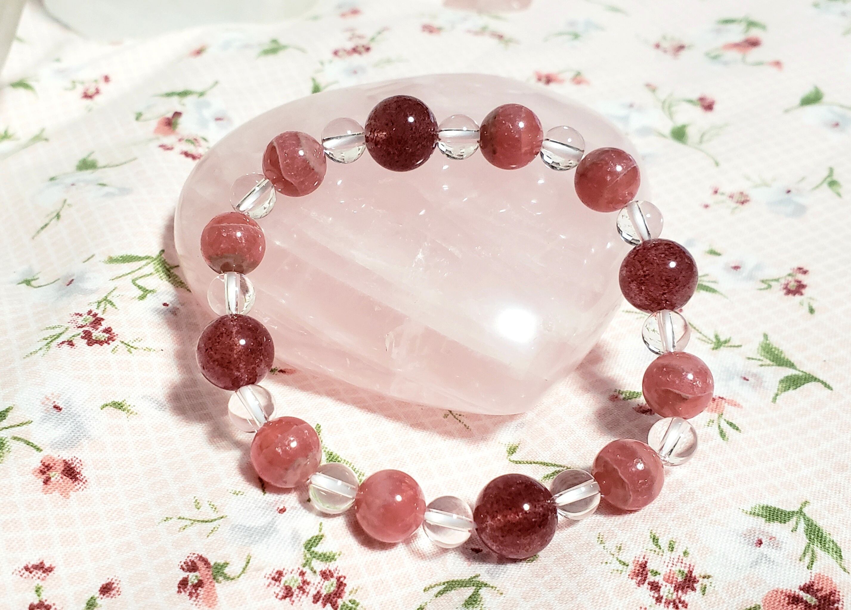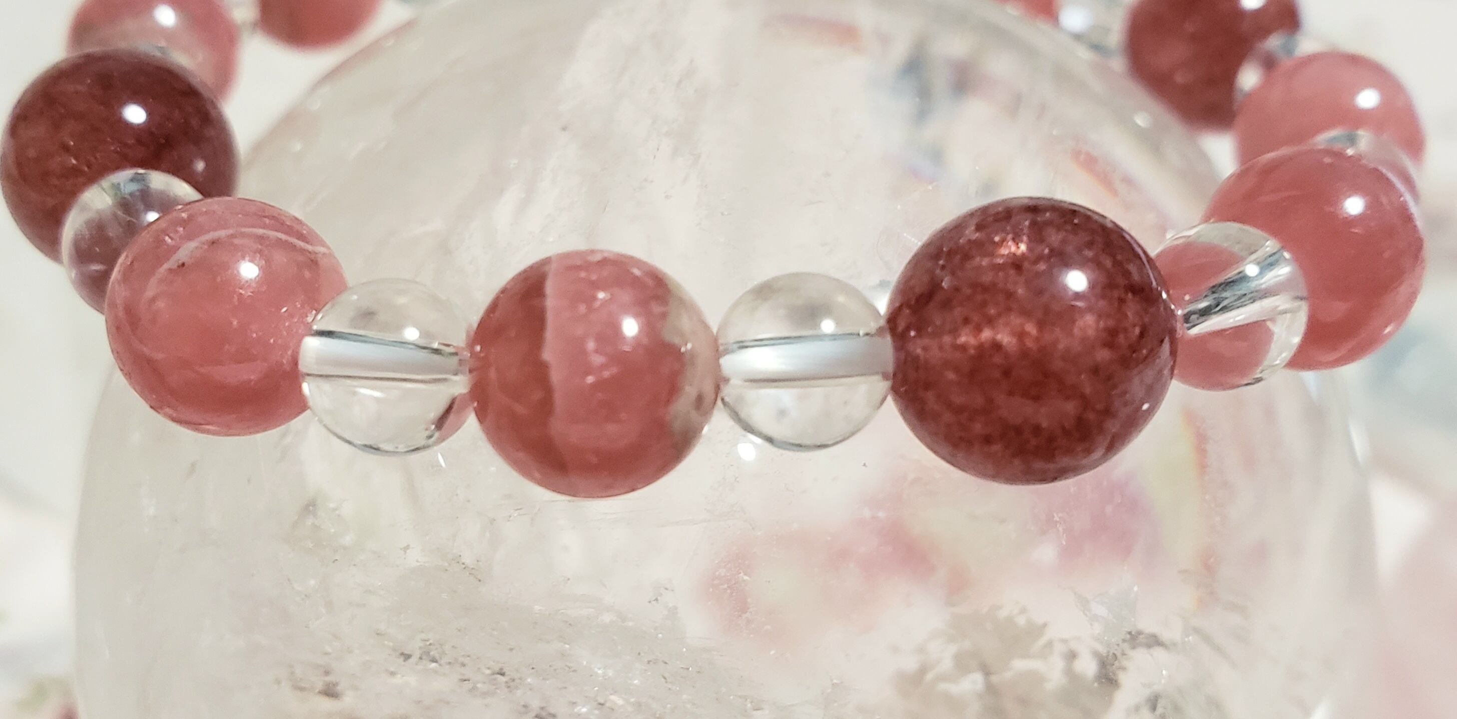 ストロベリークォーツ、インカローズ、水晶のブレスレット