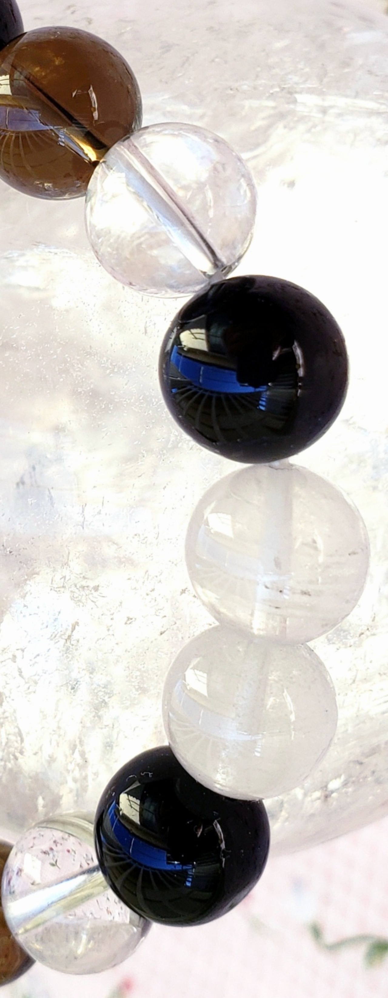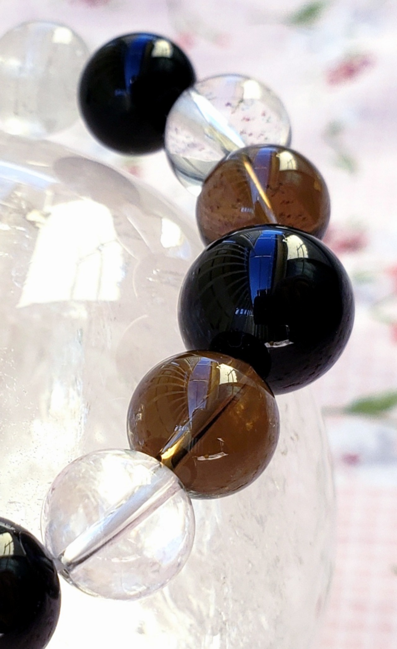 モリオン、スモーキークォーツ、千層龍神ホワイトガーデン、水晶のブレスレット