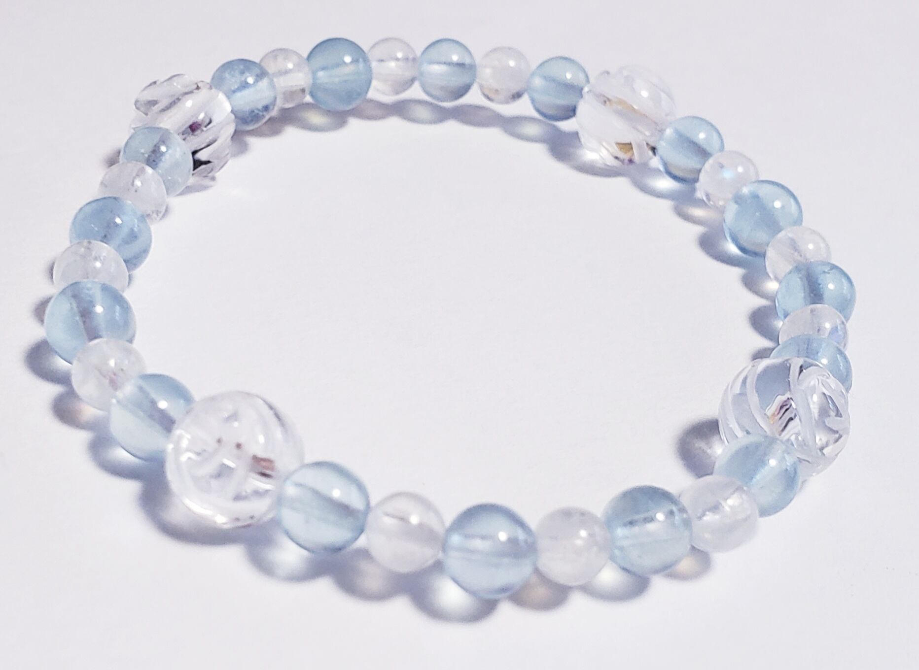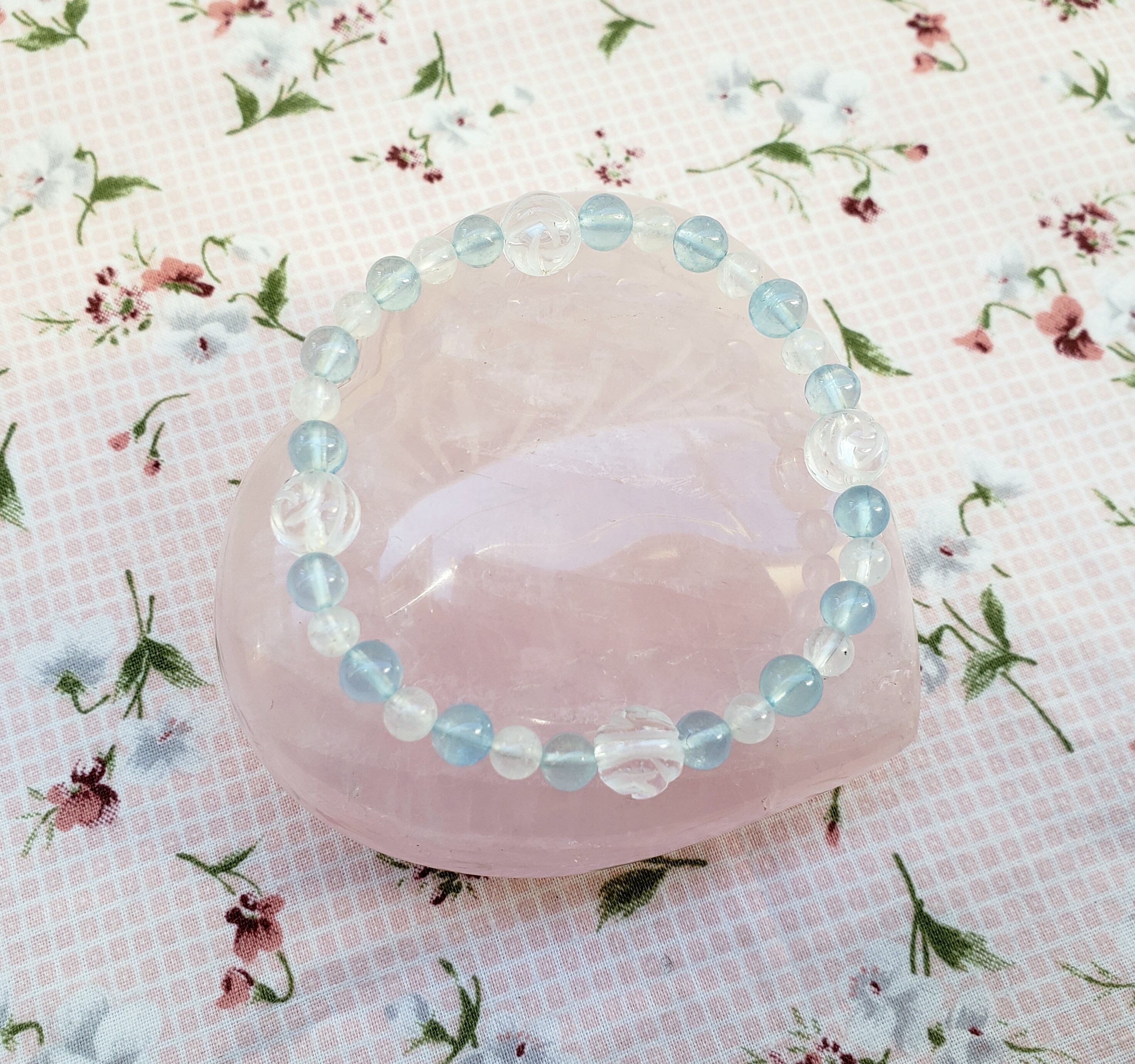 アクアマリン、ムーンストーン、薔薇水晶のブレスレット